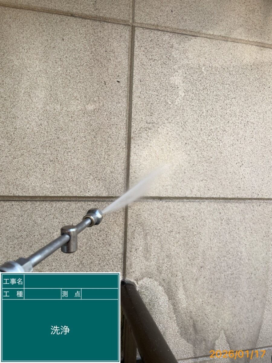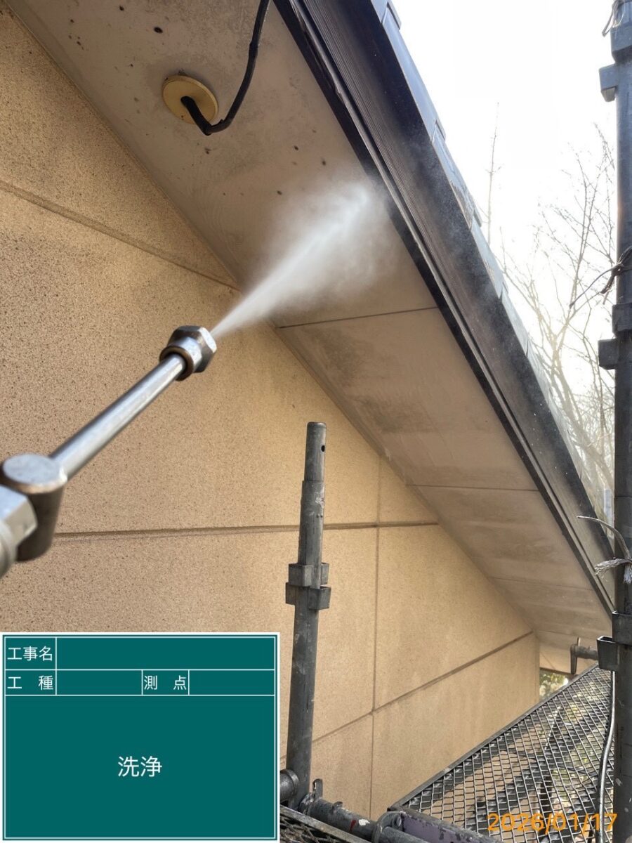 外壁塗装の前に下地処理(高圧洗浄)してます。
